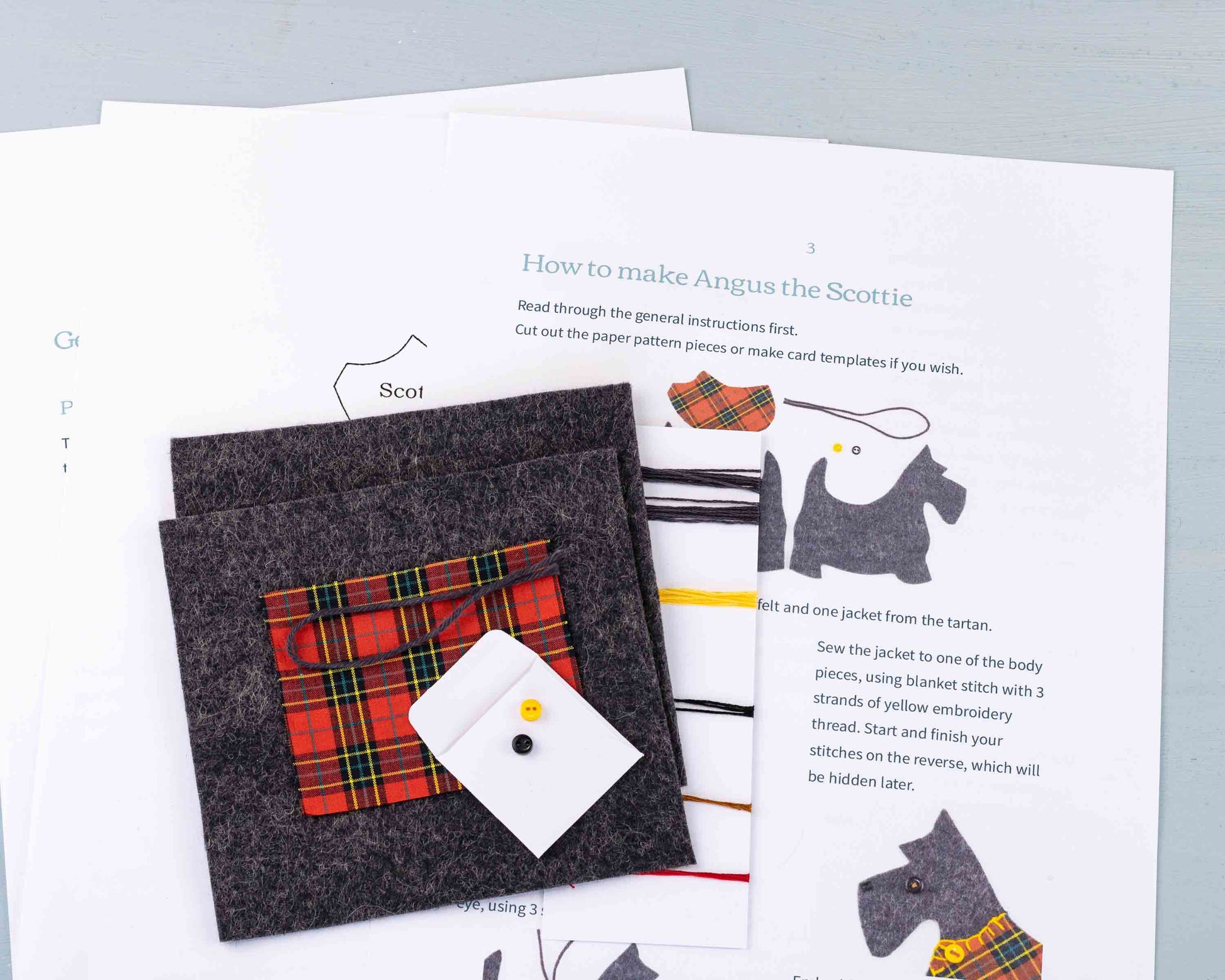 Pieces of fabric and paper templates are provided for you to cut out, so when you have made your kit, you can use the pattern again with your own materials.