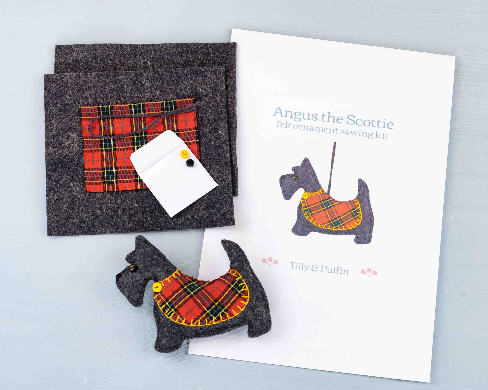 Make your own felt Scottie dog ornament in a cheery tartan coat. A simple project, great for beginners.