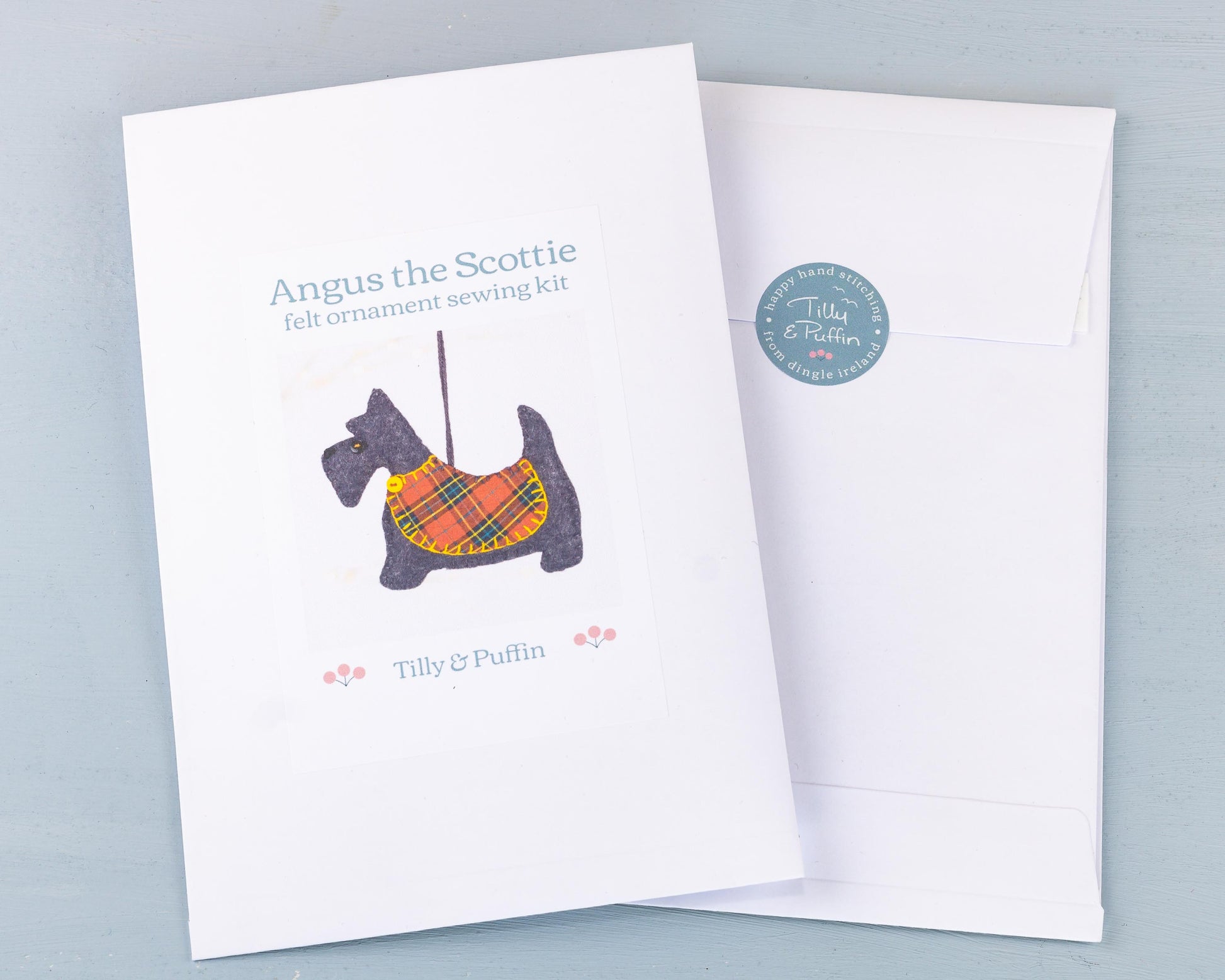 The finished Scottie measures 8cm / 3.5 inches high and has a cotton loop for hanging.
